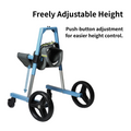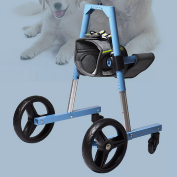 Lightweight adjustable wheelchair that helps dogs with front leg weakness regain mobility and independence.