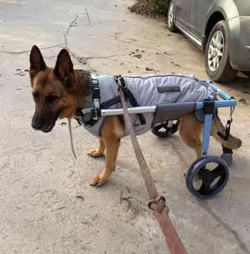 Rollstuhl mit Ganzkörperunterstützung, der behinderten Hunden Komfort und Mobilität bietet.
