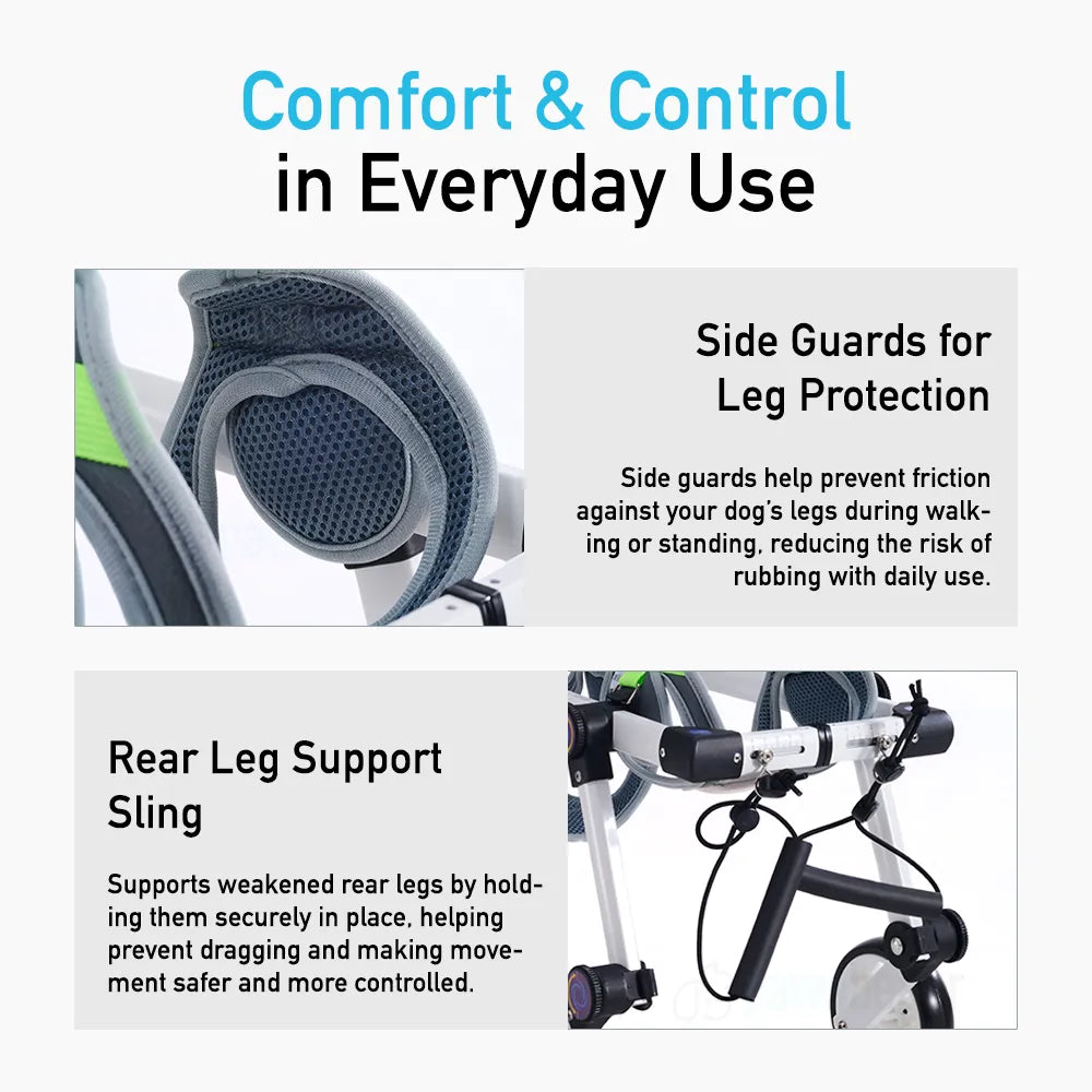 Gibt hinterbeinigen Hunden Mobilität, Komfort und Freiheit.