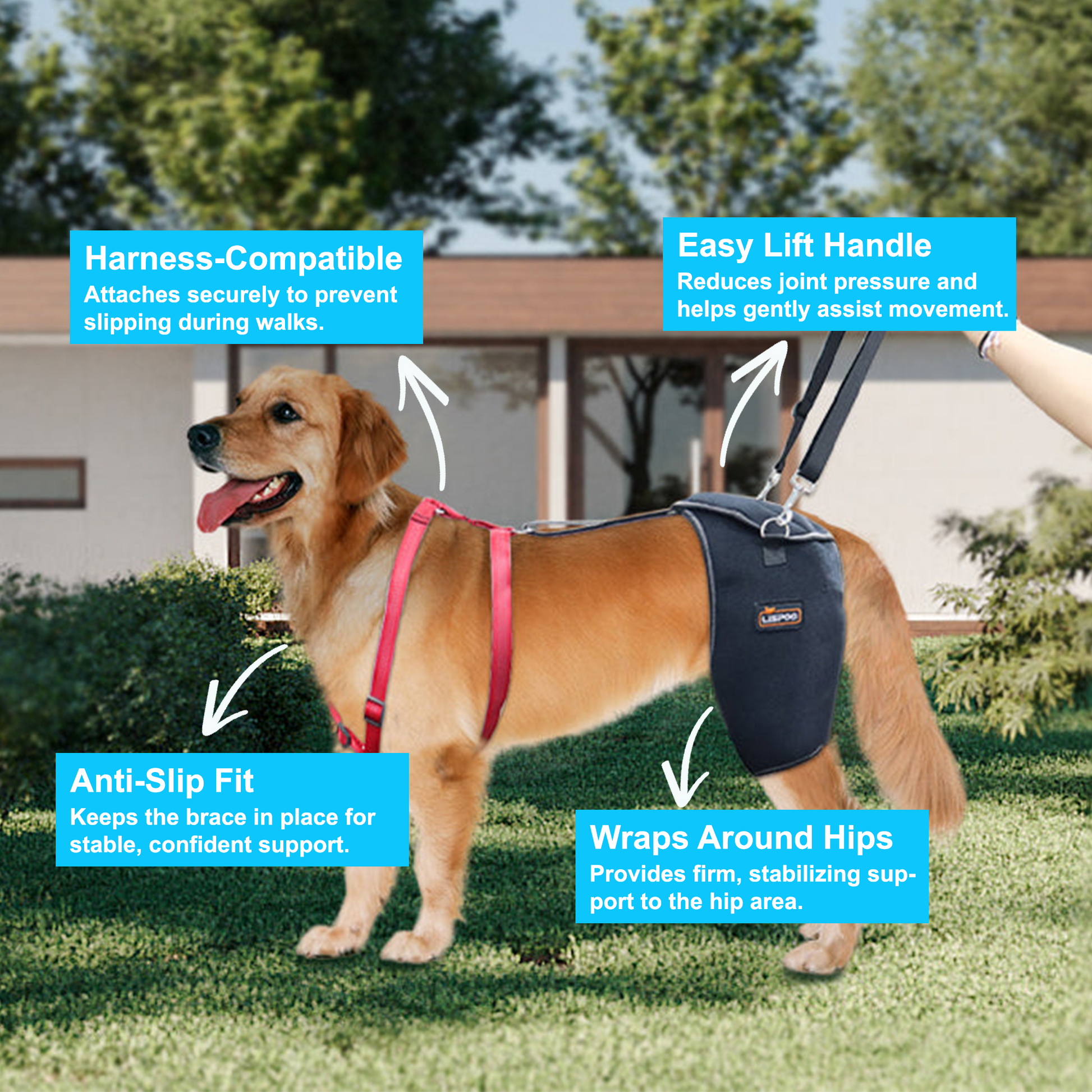 Lift, support, and protect your dog’s hips with ease.