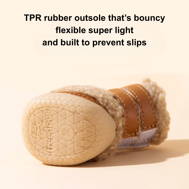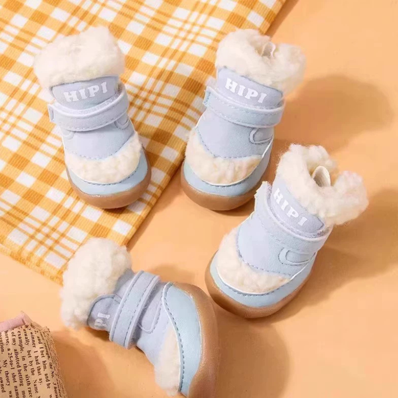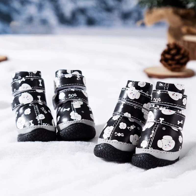 Lightweight, warm, and secure winter boots for small dogs.