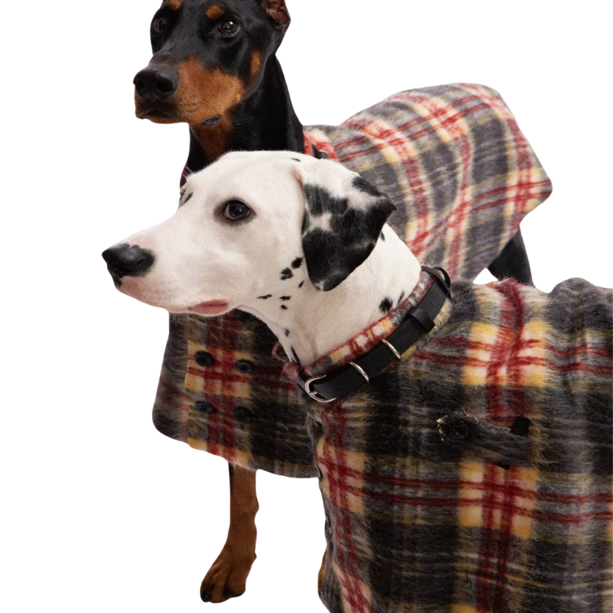 Warm plaid Christmas cloak for pets, blending comfort with festive style.