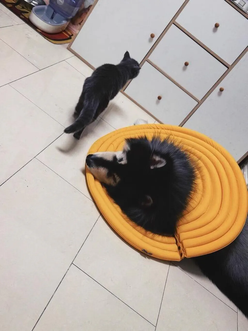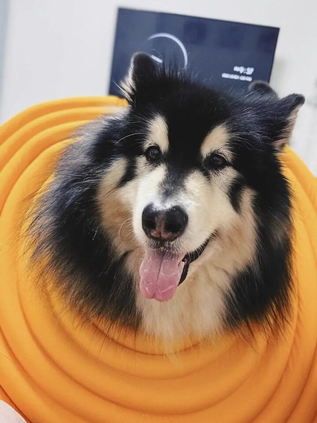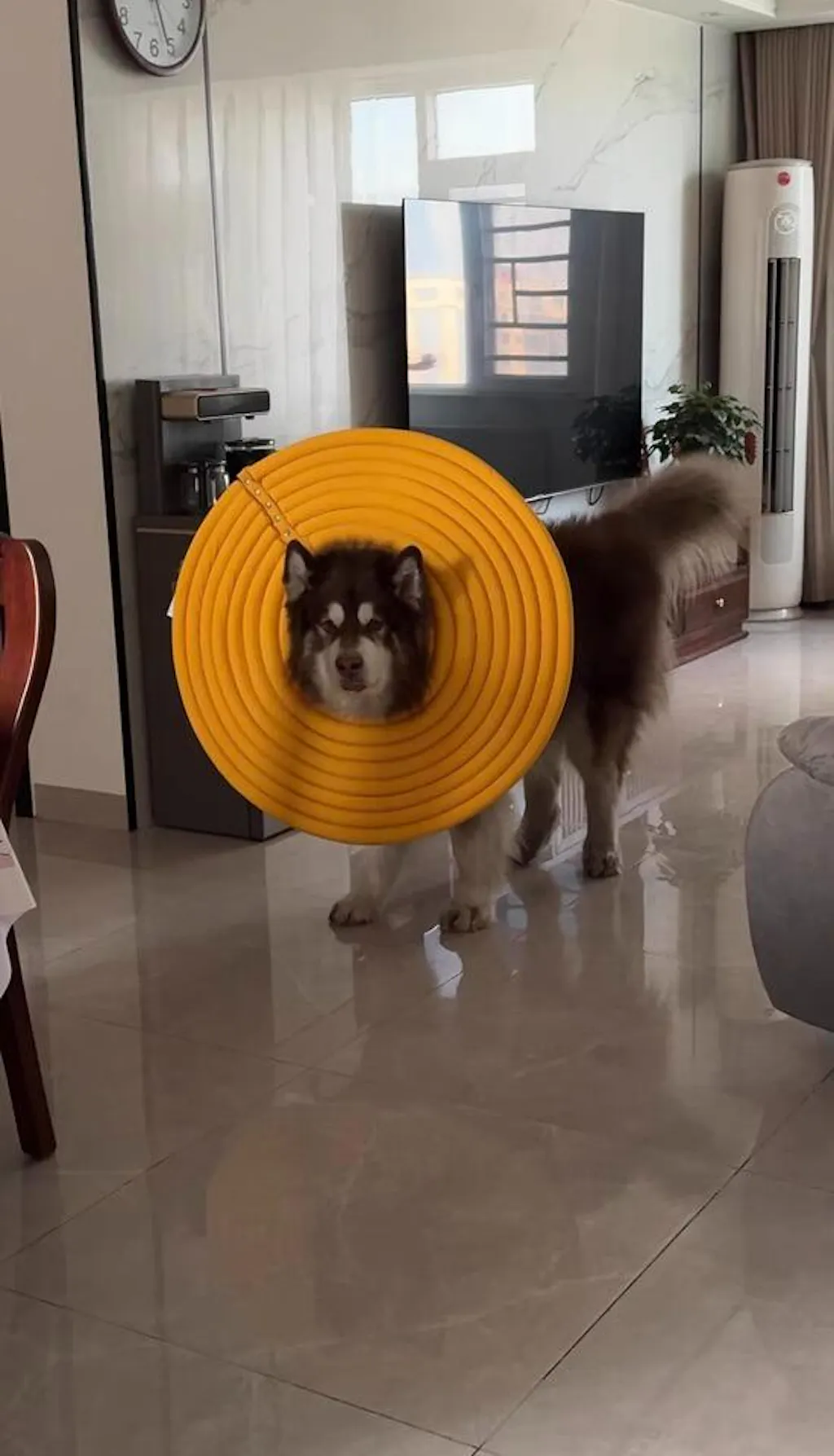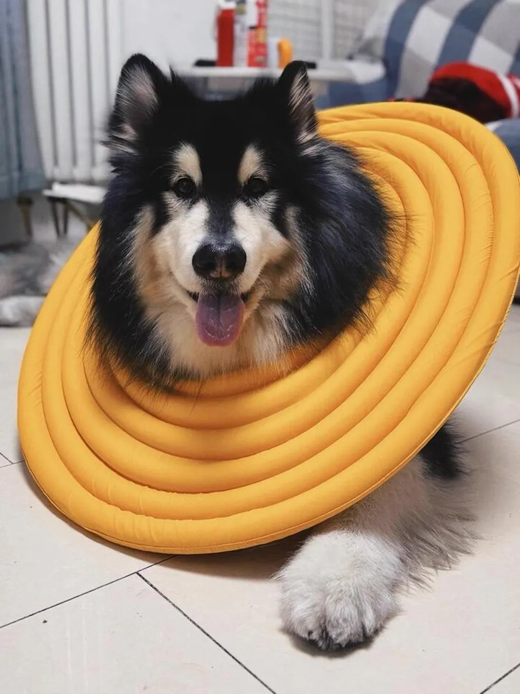 Extra-large Elizabethan collar ensuring comfort and protection for big dogs.